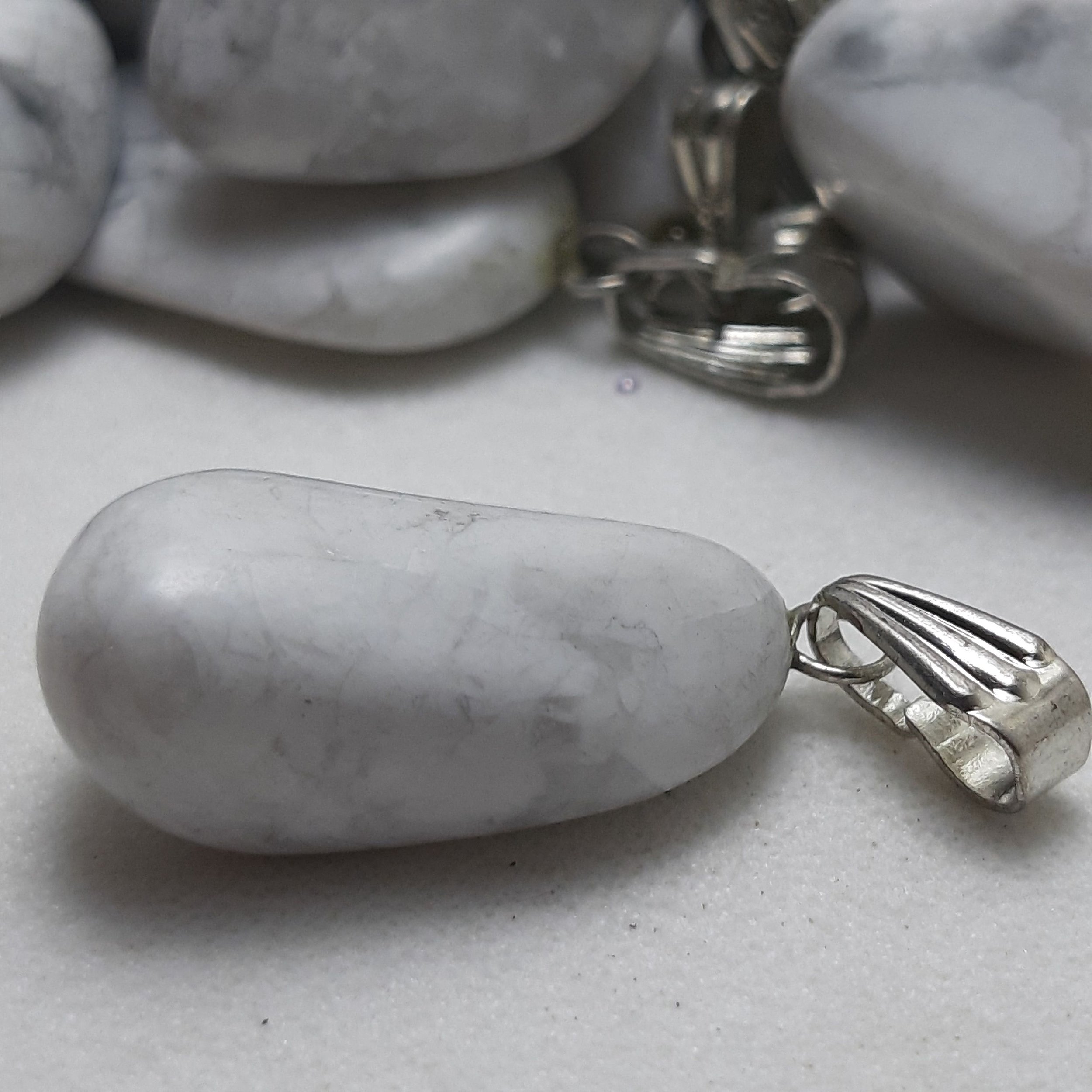 A Howlita é uma pedra de vibrações altamente calmantes e capazes de elevar nossos pensamento e sentimentos.Ela é um poderoso antídoto para a insônia, pois tem a capacidade serenar a mente, acalmar as emoções e reduzir os medos e a ansiedade.Suas vibrações também favorecem a meditação, nos ligam aos planos espirituais e preparam a mente para receber informações e ensinamentos de todos os tipos.